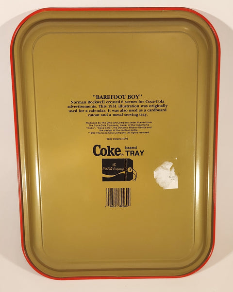 1991 Coca Cola Norman Rockwell Barefoot Boy 10 1/4" x 13 3/4" Metal Beverage Serving Tray