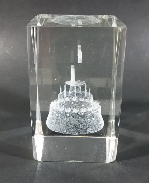 Happy Birthday Cake Themed Clear 3 1/8" Tall Laser Engraved Lucite Clear Resin Paperweight