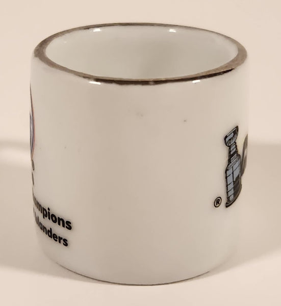 NHL Stanley Cup Crazy Mini Mug Edmonton Oilers 1984 Champs With Opponent & ScoreEdmonton Oilers vs. NY Islanders4 - 11984 Stanley Cup ChampionsExcellent condition. No chips or cracks. As seen in photos. View photos.Height: Approx. 1 1/4"Weight: 23g