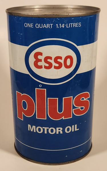 Vintage Esso Plus Motor Oil One Quart 1.14 Litres Blue Metal Can FULL