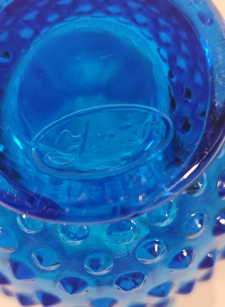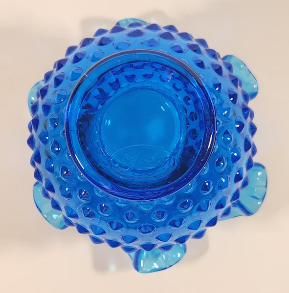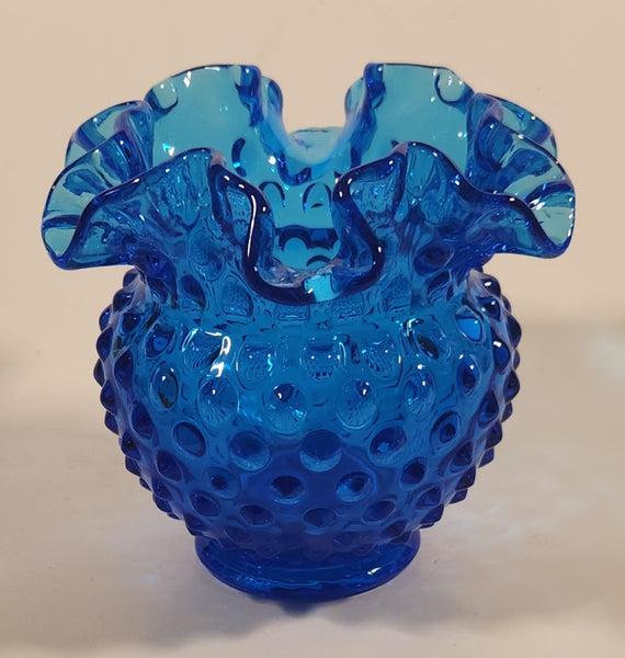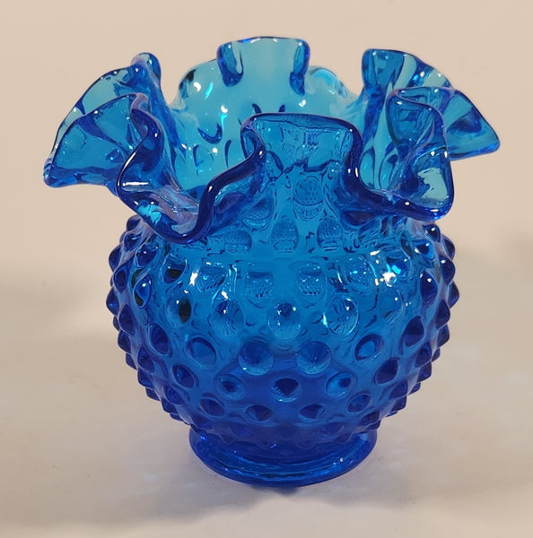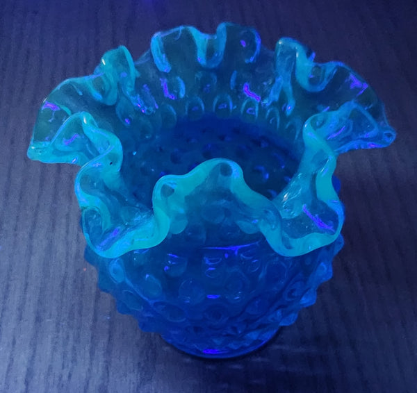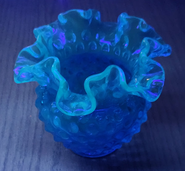 Vintage Fenton Ruffled Edge Hobnail Blue Uranium Glass Flower Vase