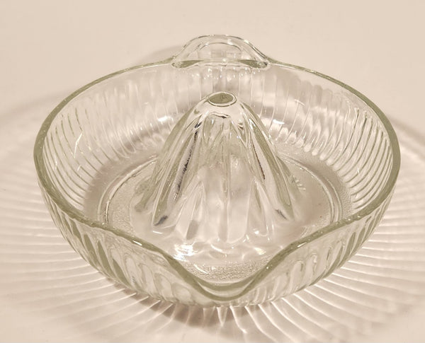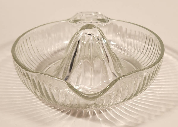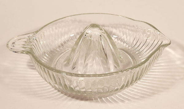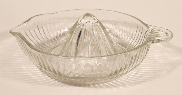 Vintage Lemon Hand Juicer Reamer Thin Ribbed Depression Glass Bowl with Handle and Pour Spout