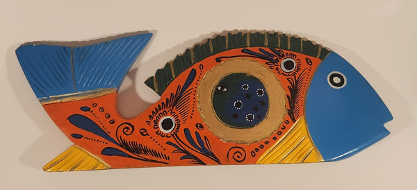 Vintage Mexican Folk Art Tropical Fish Blue Orange Gold Hand Painted 17" Carved Wood Sculpture