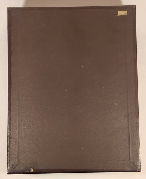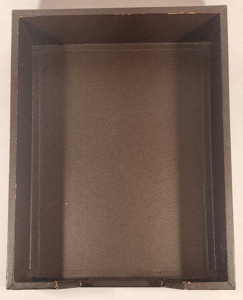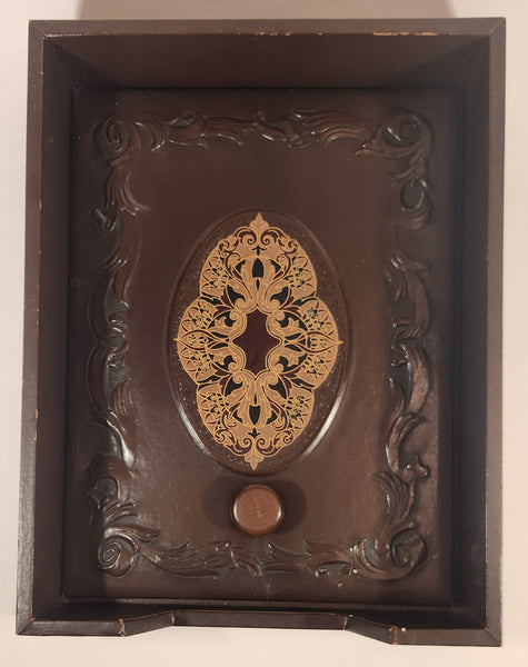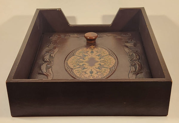 Vintage Ornate Design Dark Brown Wood Paper Memo Holder Tray With Weighted Leather Security Cover