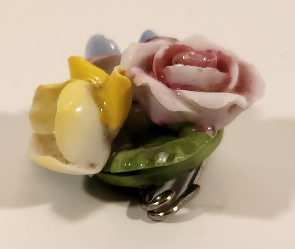 Vintage Crown Staffordshire Porcelain Floral Flower Bouquet Brooch Pin