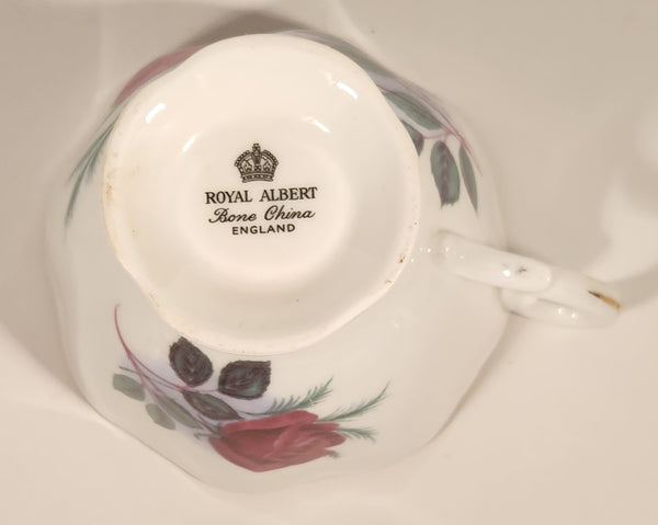 Vintage Royal Albert Bone China England Red Rose Flowers Tea Cup & Saucer Set