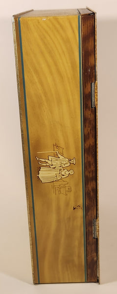 Vintage Victorian Man with Glass of Red Wine and Woman in Blue Dress on Staircase Tin Metal Container