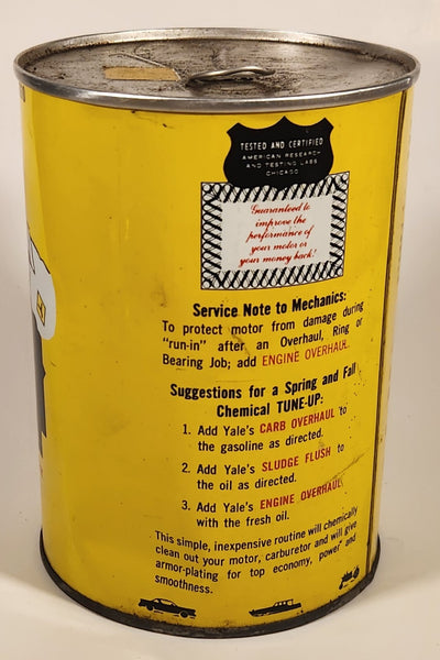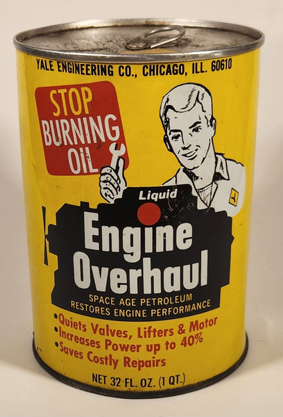 Vintage Yale Engineering Co. Chicago Engine Overhaul Liquid 32 Fl Oz. 1 Quart Yellow Metal Can FULL